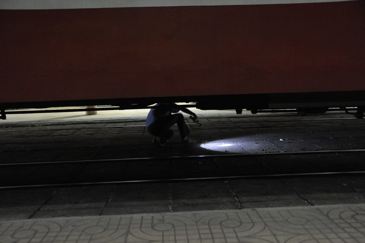 Warten, dass der Zug wegfährt, so dass man auf die andere Seite kommt. Unterführungen oder Ähnliches, um zwischen den Bahnsteigen zu wechseln existieren nicht.