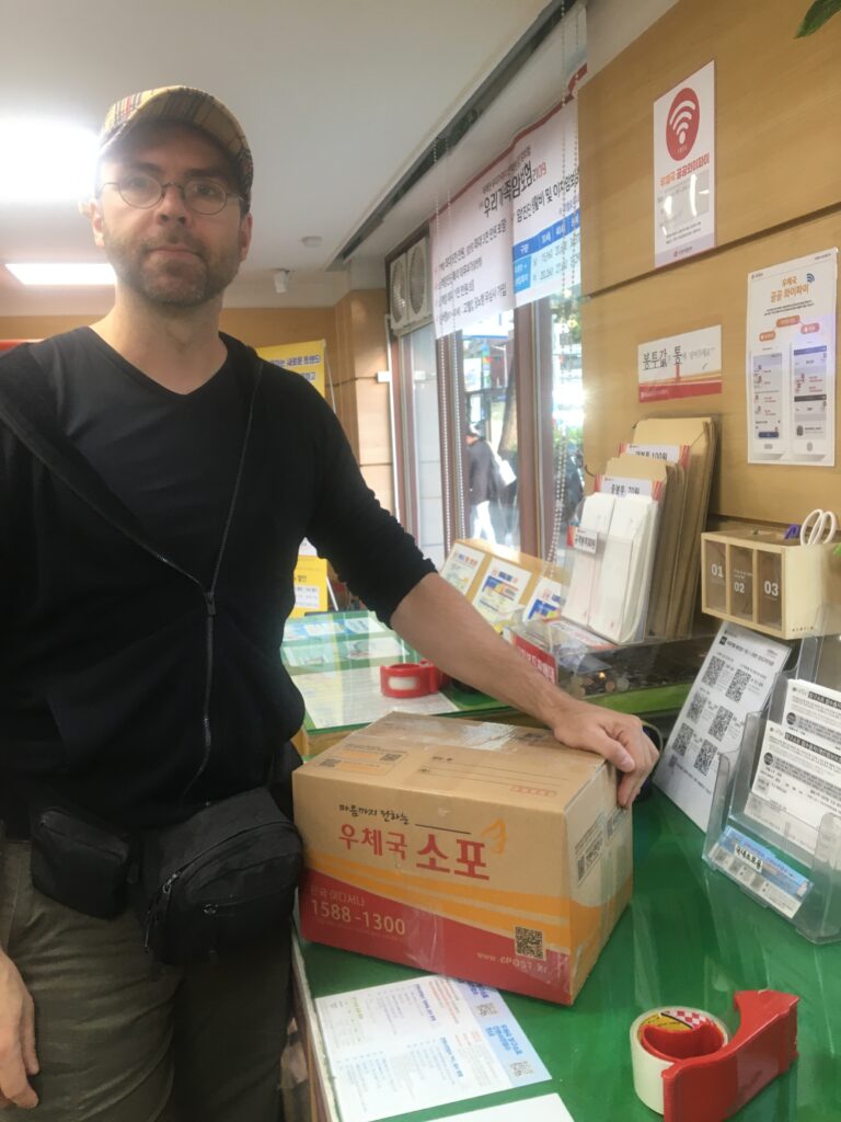 Korea ist ja zur Abwechslung mal ein Land, in dem weder ich noch Beibei die Schriftzeichen lesen können. Dinge des täglichen Lebens sind können deswegen manchmal etwas herausfordernd sein. Manches klappt dann mit Hilfe und manches ohne. Heute waren wir spaßeshalber mal im Waschsalon, haben bei der Post mit hilfe eines äußerst geduldigen und hilfsbereiten Mitarbeiters ein Paket nach China verschickt und haben das ausgefeilte Bussystem probiert.