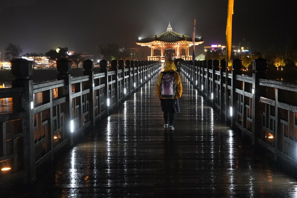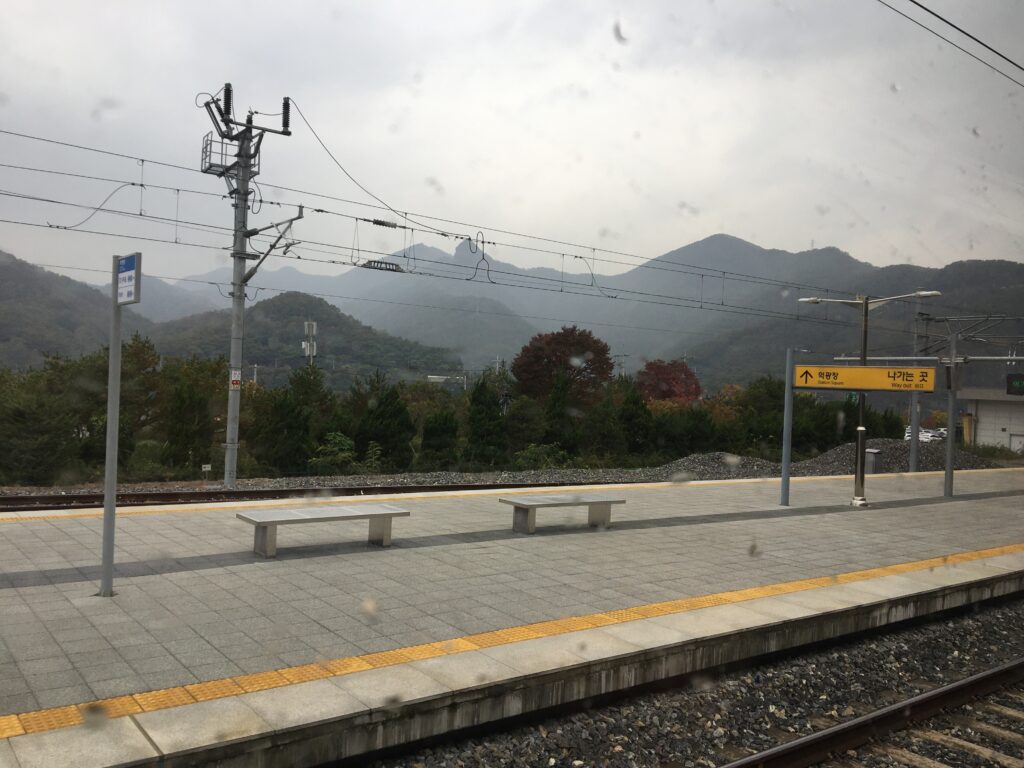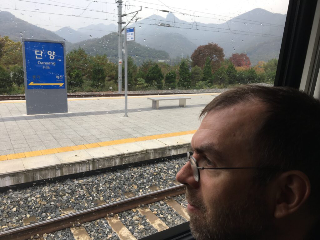 Obwohl wir gefühlt erst an der Oberfläche von Seoul gekratzt haben, sind wir mal in ländlichere Gefilde aufgebrochen.Die Zugfahrt dauert mit etwa 3 Stunden gar nicht mal so lange, dafür dass wir das Land schon fast von West nach Ost durchqueren.Verzeihung. Ich wurde ja darauf aufmerksam gemacht, dass ich weniger anonyme Landschaft zeigen soll, sondern mehr Gesichter.Das Land hat jedenfalls auch schöne Hochöfenund schöne SägenKleiner Spaziergang am Abend. Beginnt trocken. Endet im Regen auf der längsten Holzbrücke Südkoreas (von Metallpfeilern gestützt)