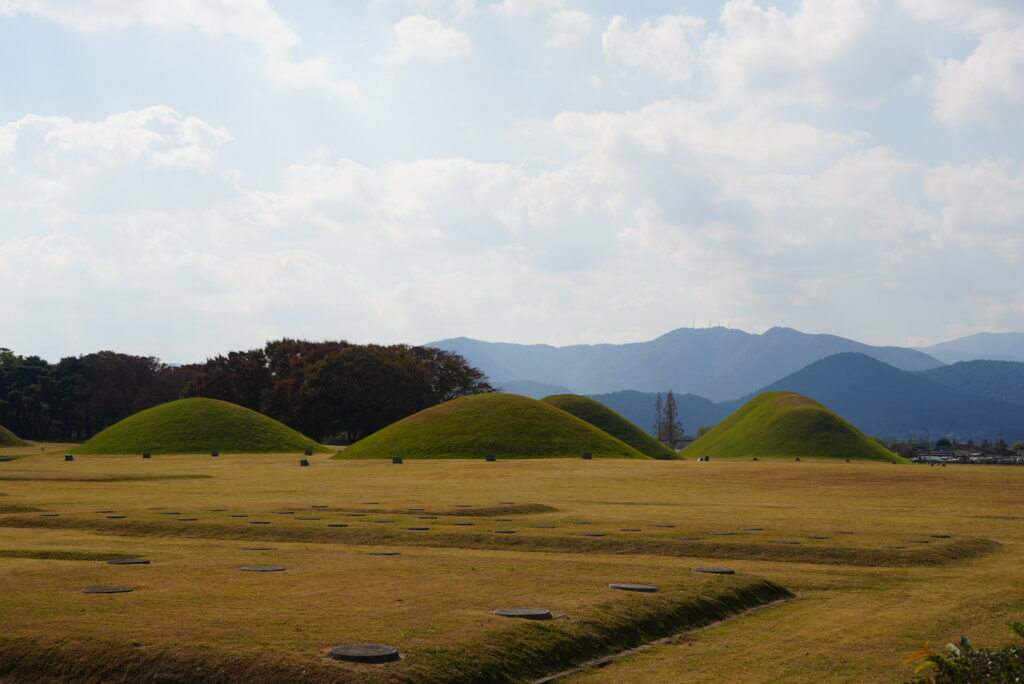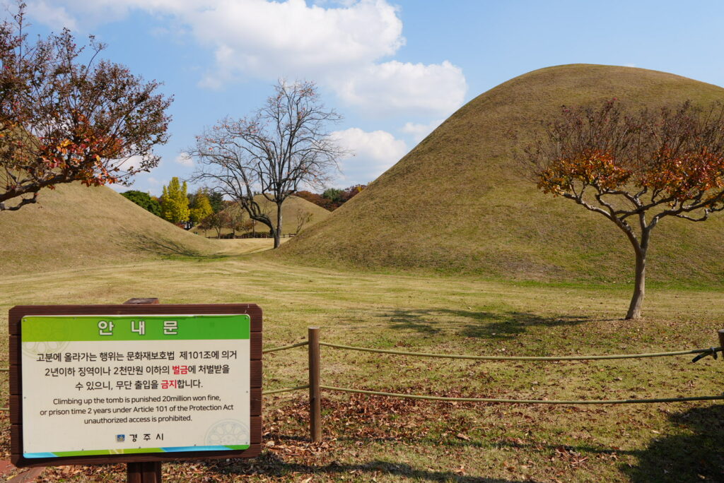 Wir sind weitergereist, zu einem Ort der zu nicht unwesentlichen Teilen aus Hügelgräbern bestehtUnbefugtes betreten der Dinger ist nicht ganz billig. 1 Euro sind übrigens ca 1400 WonSelfie-timeAn diesem Ort treffen wir übrigens das erste mal auf größere Zusammenballungen von Touristen. Die meisten Koreaner. Auf was die hier wohl warten?Warten bis es dunkel ist, um ein Foto dieser Art zu machen.Die Kleinbildkamera wird gar nicht so selten gefordert wie ich anfangs dachte CU